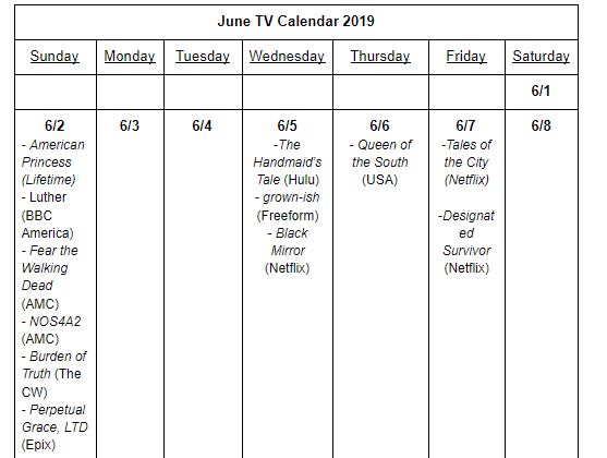 Netflix Calendar June 2019